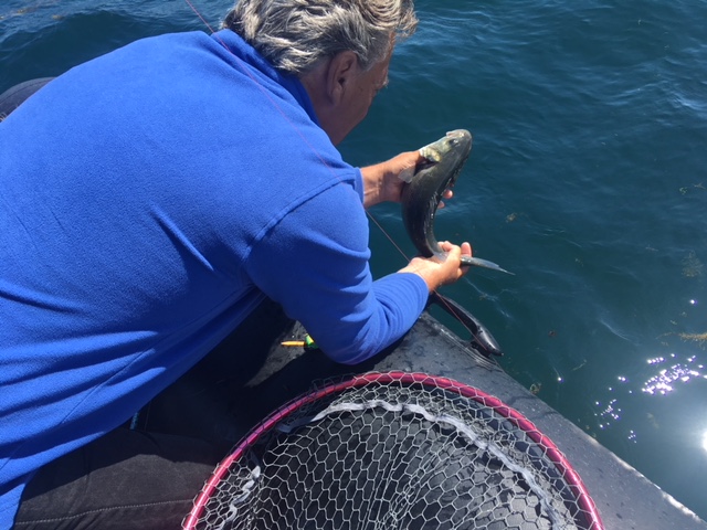 Kevin fait le dernier pagre de la journée à 1 cm du record du bateau.